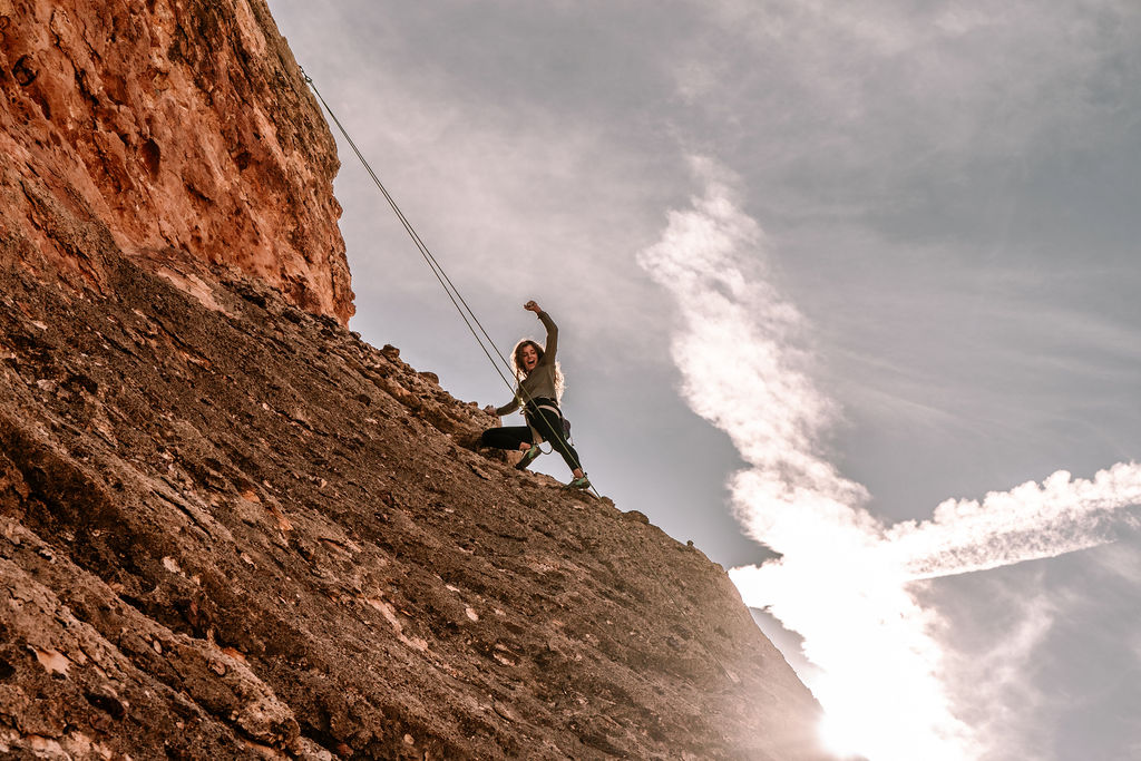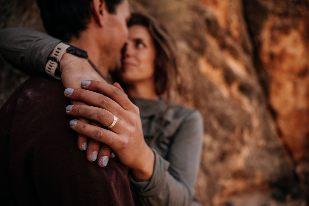 I heavily relied upon Kenna and Hayden’s intimate knowledge of the area to figure out the perfect spots for their adventure session. They knew best when the rock face would be in the shade and when we would have a chance at playing with the sun bursts over the edges.