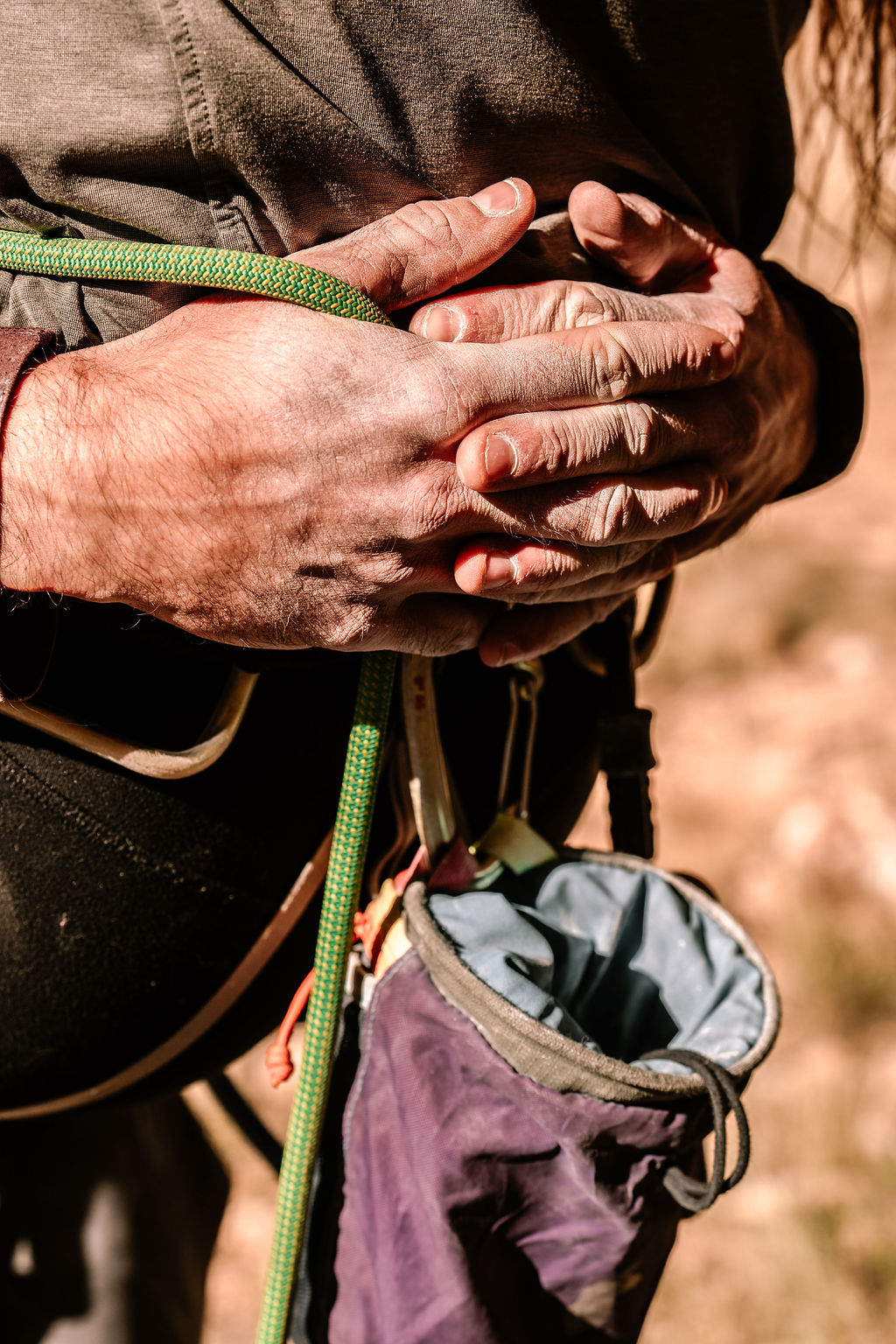 Kenna and Hayden knew to bring a change of clothes for their Arizona rock climbing since we would be spending the majority of the time rigging and on the wall. That’s why I wanted to make sure we made these field photos happen beforehand in their nicer engagement outfits.